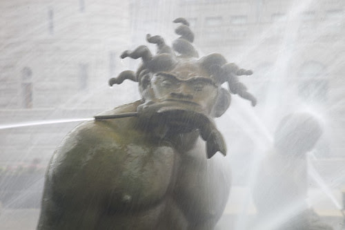 So, this is something I shot about the same time as Monday's post at the Carl Milles fountain, The Meeting Of the Waters. The original was pretty awful. There was too much contrast between the statue and the building, I forgot my tripod, my manual focus was sloppy and, probably, the dog ate my homework. After reading the DPS piece I threw the single image into Photomatix, buffed it up a bit in Photoshop and, voilĂ , this is what we get.