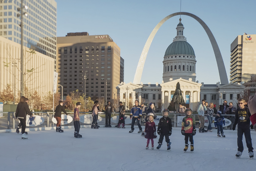 As mentioned, we took the tyke to the seasonal skating rink in Kiener Plaza on Saturday. There was one under the Arch last year that had a synthetic surface - don't know if this was the same. Ellie didn't care.