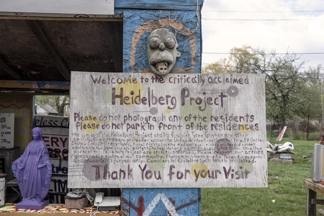 Don't mean to be repetitive but The Heidelberg Project was a photographer's gold mine. The human images there are, for the most part, found objects, someone's cast-offs. The interest is in their placement and relationship to their surroundings.